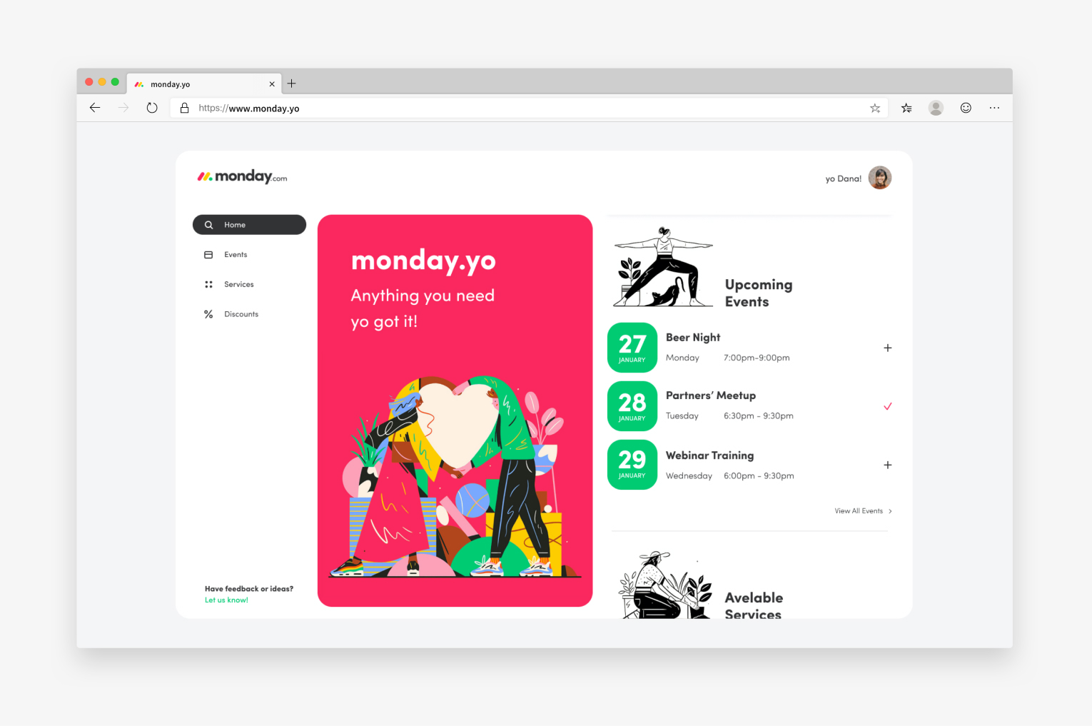 On the site - every employee can see and book upcoming events, sign up for services, and enjoy different discounts.