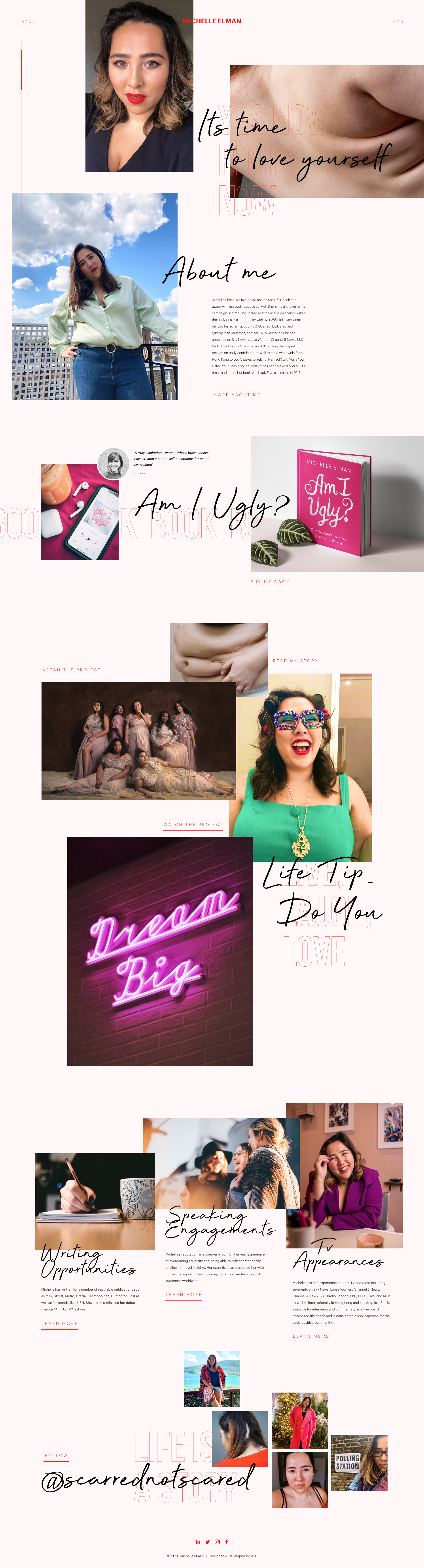Michelle Elman is an Author, Speaker & Life Coach focusing on body-positive approach. In this project, I redesigned the website, which included workshops sign-ups, previous work, and purchasing her book. It gave a wider opportunity for Michelle Elman audience to learn more about her work and who she is.