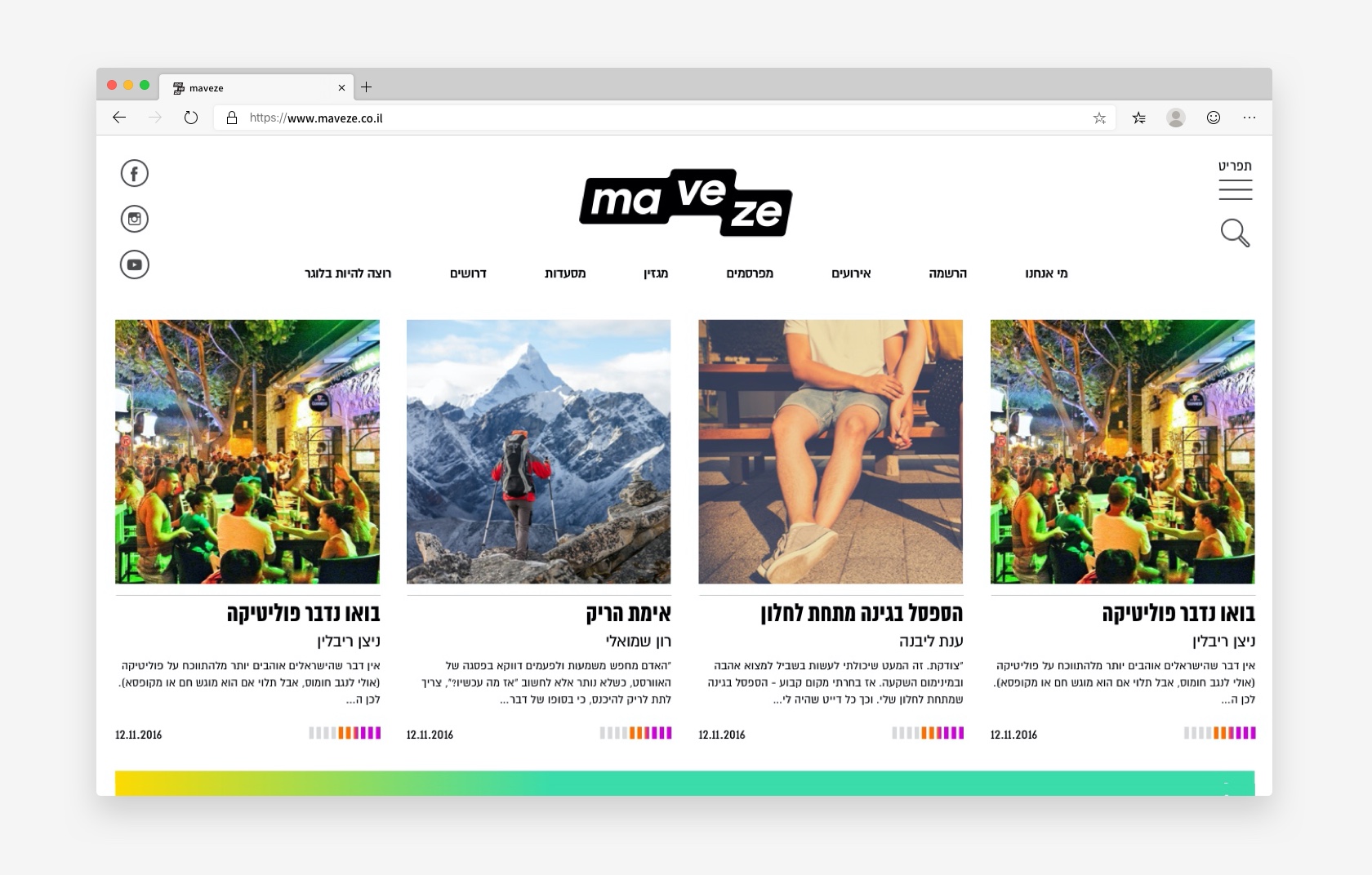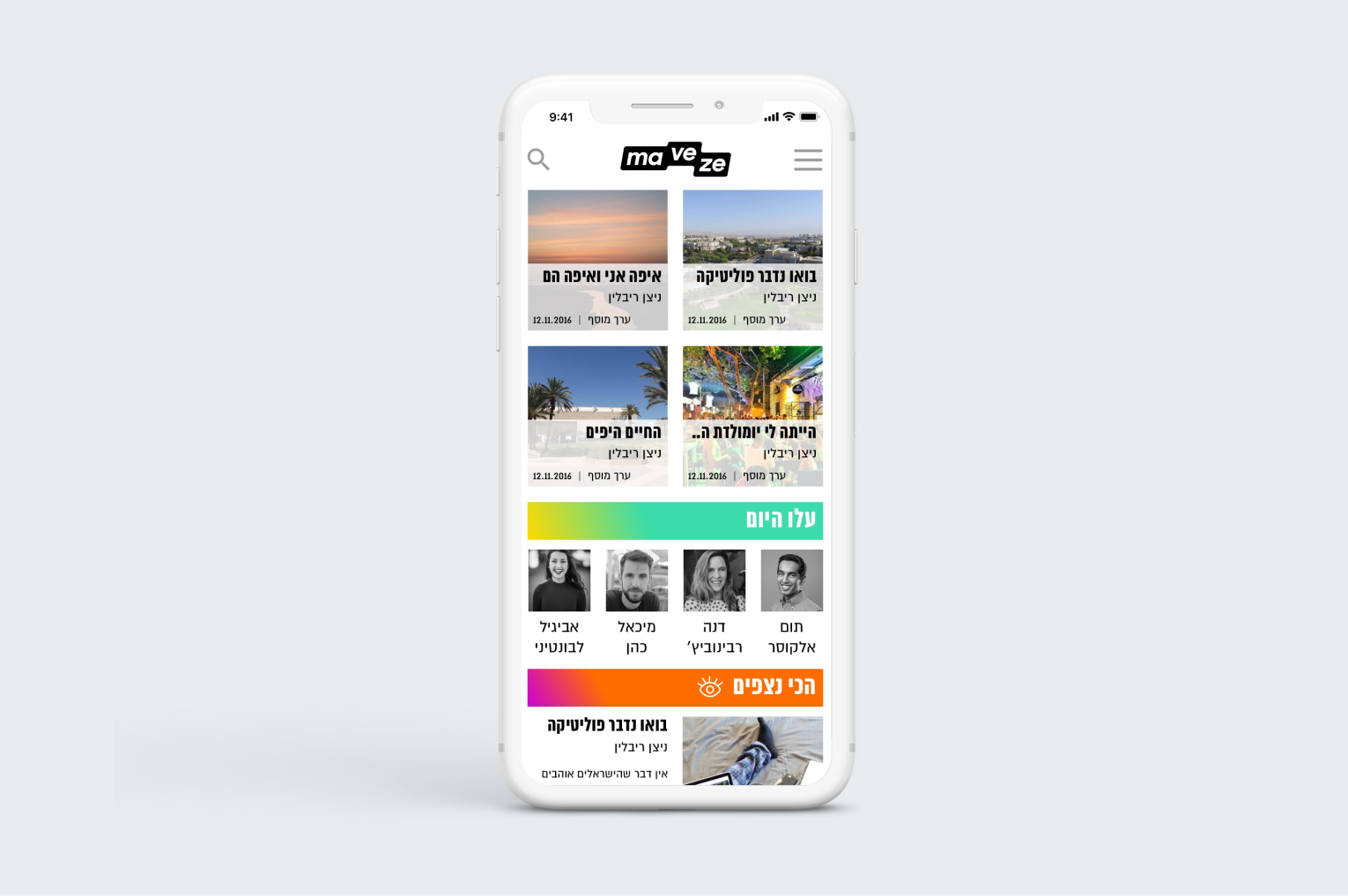 The content on “maveze” is created by different bloggers as personal or sponsored posts and is divided into categories; such as work, study, culture, sports, entertainment, dating and politics and society. The redesigning was inspired by top news and content sites.